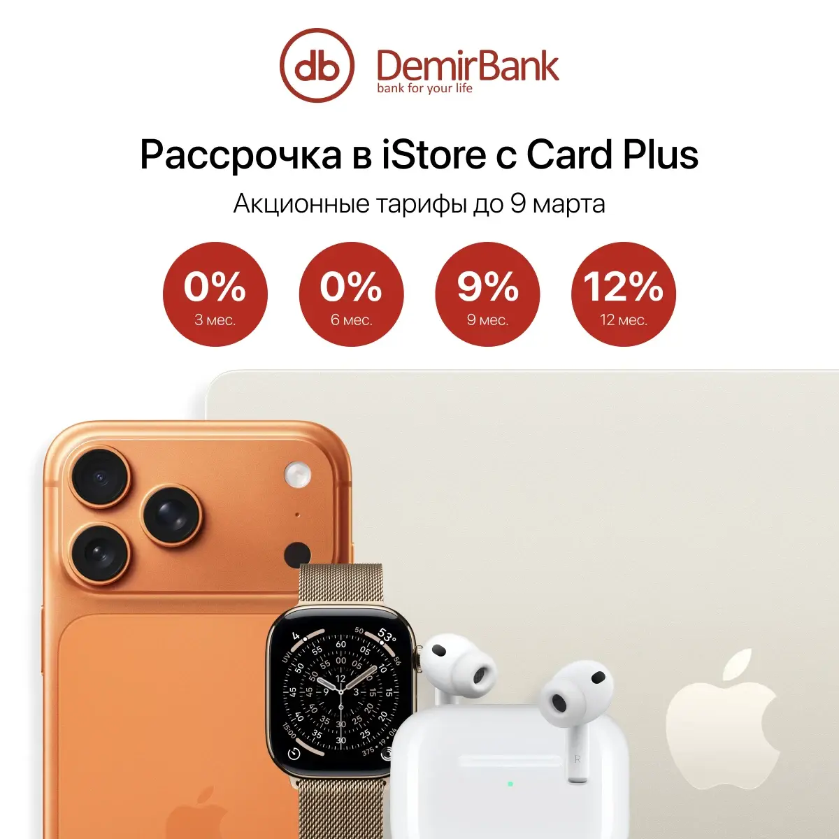 С приближением 8 марта особенно актуальным становится выбор подарков для себя и близких. В iStore новый iPhone, Apple Watch и аксессуары можно оформить уже сегодня, а оплатить покупку позже без переплат по карте рассрочки Card Plus от DemirBank.